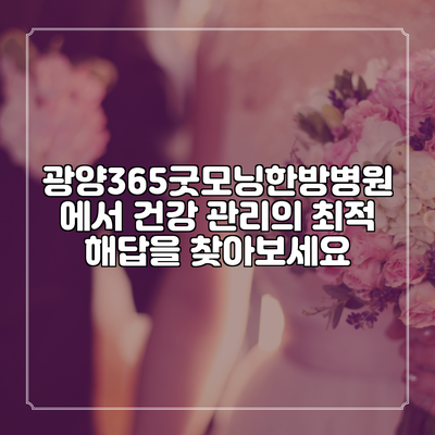건강한 삶을 위해, 오늘 바로 광양365굿모닝한방병원에 예약해 보세요. 여러분의 건강이 가장 소중한 가치입니다.