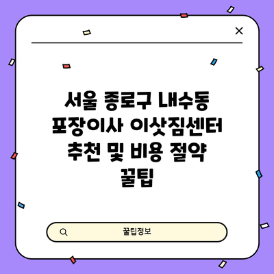서울 종로구 내수동 포장이사 이삿짐센터 추천 및 비용 절약 꿀팁