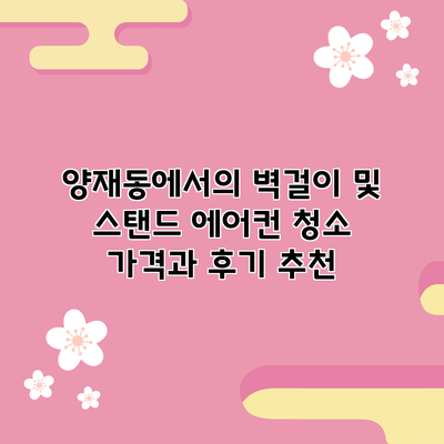 여름철이 다가오면 많은 이들이 에어컨 청소를 고려하기 시작해요. 에어컨 청소는 단순한 유지 관리가 아니라, 건강과 편안함을 위한 필수적인 과정입니다. 양재동에서 벽걸이 및 스탠드 에어컨 청소를 계획하고 있다면, 가격과 청소 방법, 그리고 업체 후기를 잘 알아보는 것이 중요해요. 이번 포스팅에서는 양재동의 에어컨 청소에 대한 정보와 추천 업체를 소개하겠습니다.