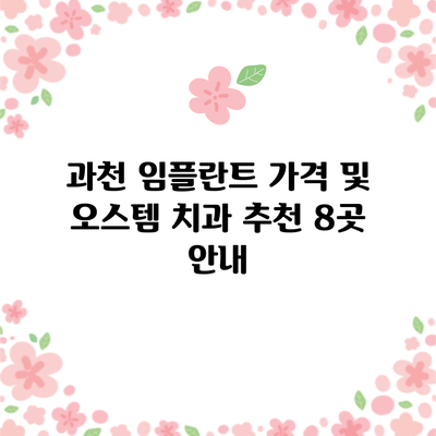 과천 임플란트 가격 및 오스템 치과 추천 8곳 안내