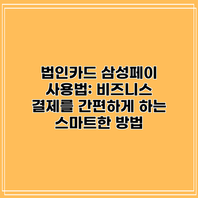 법인카드 삼성페이 사용법: 비즈니스 결제를 간편하게 하는 스마트한 방법