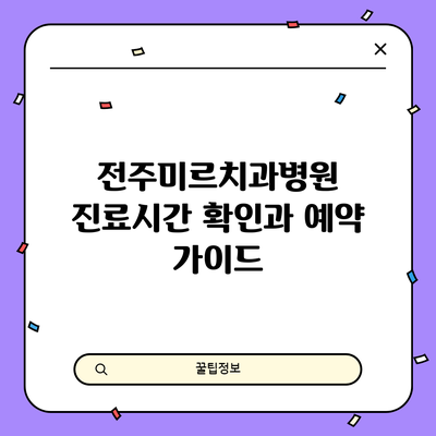 전주미르치과병원 진료시간 확인과 예약 가이드